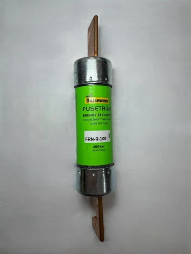 A Bussmann Fusetron series (FRN-R) fuse. It is a Class RK5 fuse with a 100-amp rating at 250V AC, with a time-delay feature suitable for motor circuits.