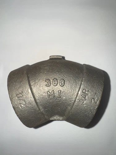 1-1/2″ Class 300 malleable iron 45° threaded elbow.