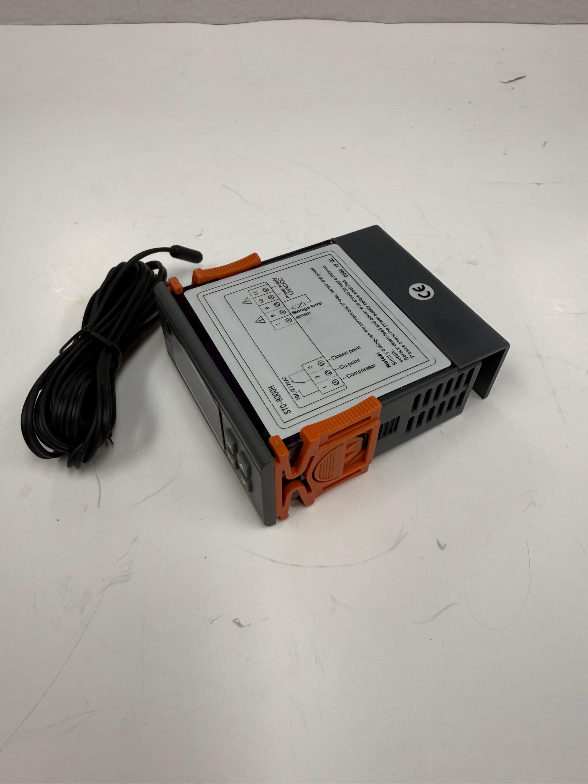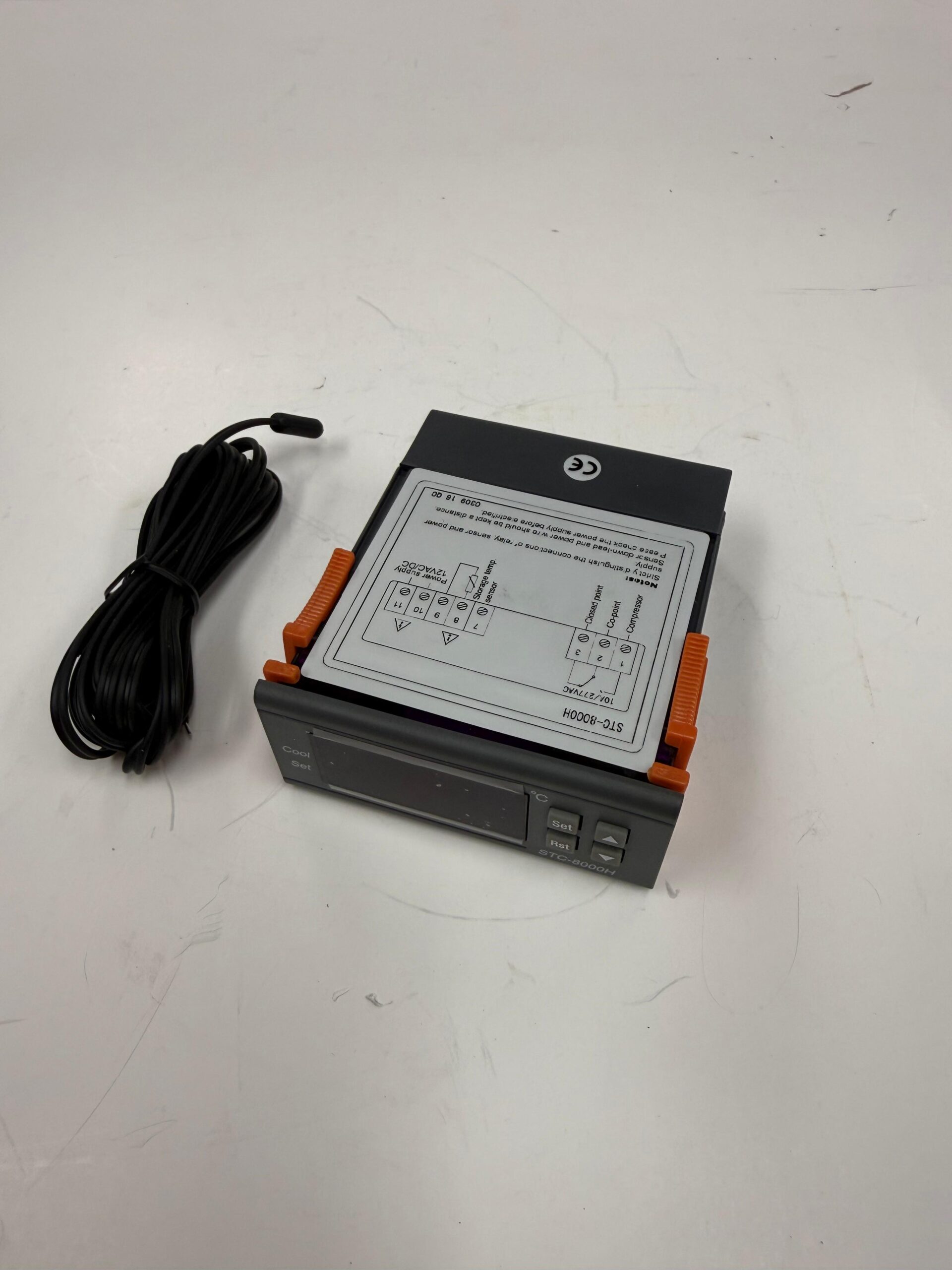 - Sensor: Includes a temperature probe to measure the environment.