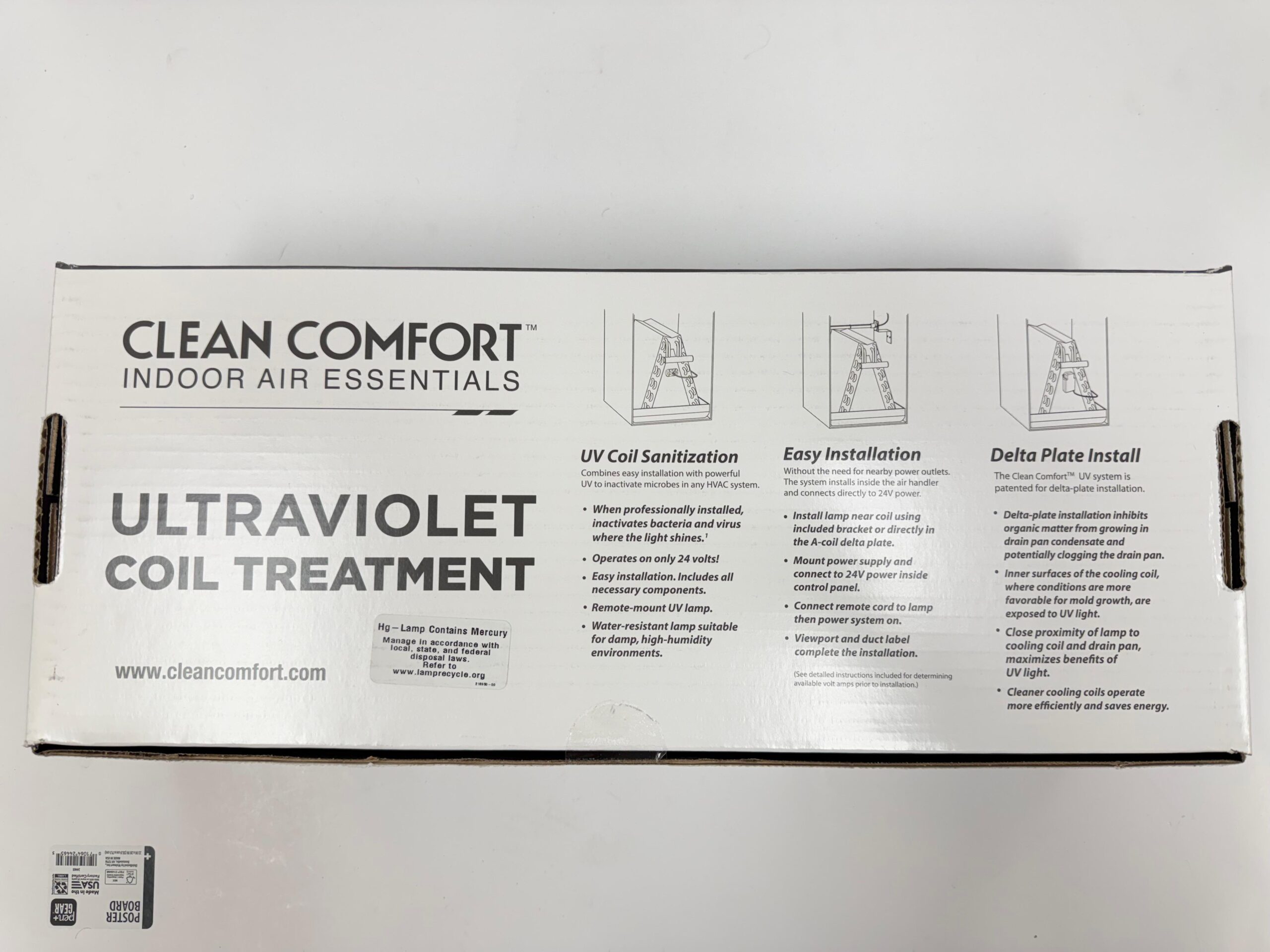 Clean Comfort Ultraviolet (UV) Coil Treatment system for HVAC units. Key features include: